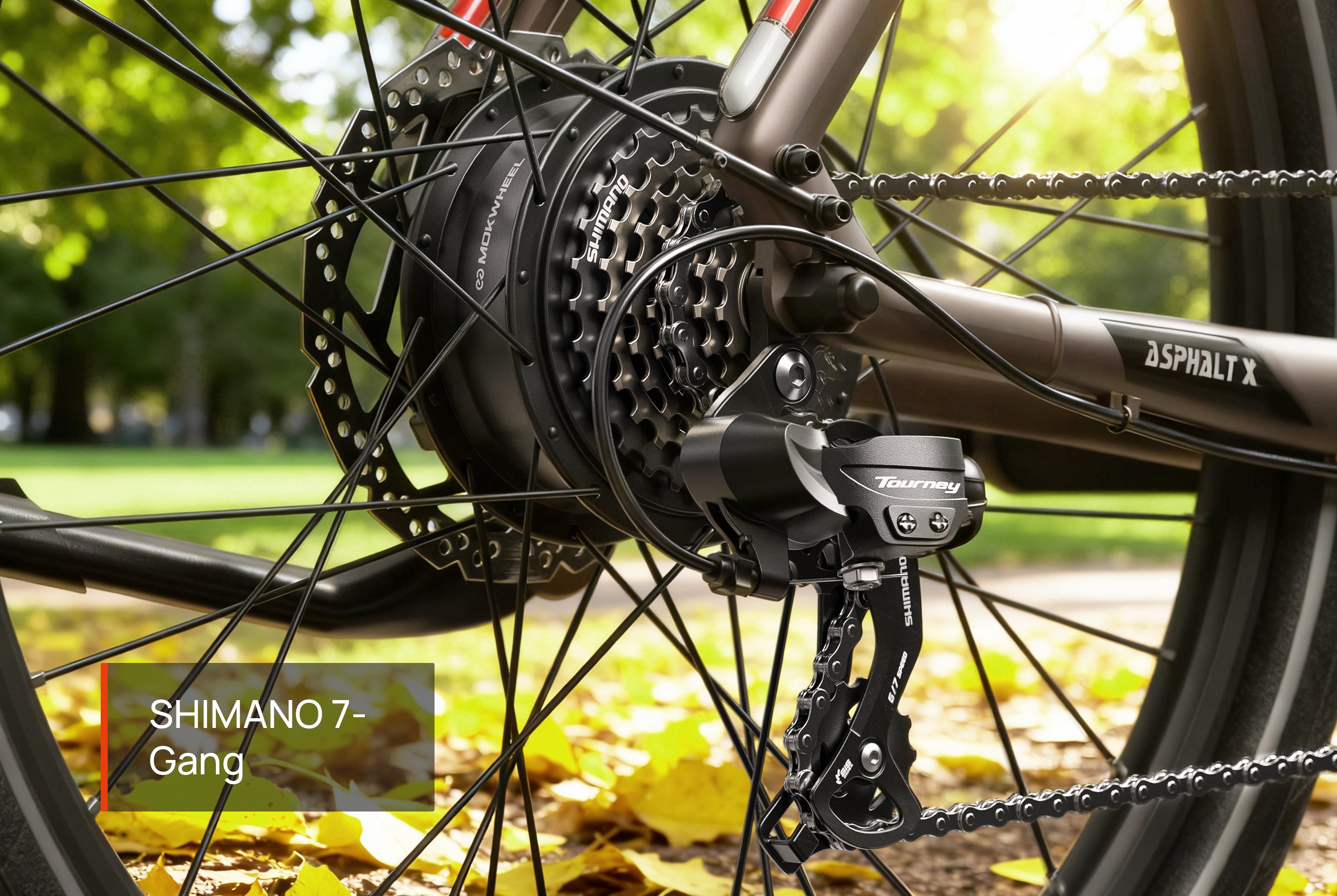Nicht nur beim äußerlichen Design, sondern auch bei der Ausstattung kann das Mokwheel Asphalt wirklich überzeugen. Bei wichtigen Elementen wurden gute und bewährte Markenkomponenten verbaut.Das Fahren mit dem Mokwheel Asphalt war sehr angenehm, der Motor unterstützt nahezu sofort, sodass man auch an Steigungen schnell und bequem anfahren kann. Man kann mit dem Rad sowohl langsam und entspannt fahren, als auch schnell auf hohe Geschwindigkeiten kommen, wenn man das möchte, die Trittfrequenz ist dabei gut über die Gänge einstellbar.