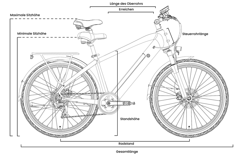 Sie können bequem in die Pedale treten und über dem Rahmen stehen.
