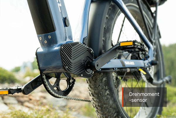 Der Drehmomentsensor erkennt in Echtzeit jede Ihrer Tretkräfte und Ihren Rhythmus und passt die Motorleistung sofort an, um eine präzise Kraftübertragung zu ermöglichen. Dies sorgt für eine sanftere Fahrt, eine größere Reichweite und ein natürlicheres Fahrgefühl.