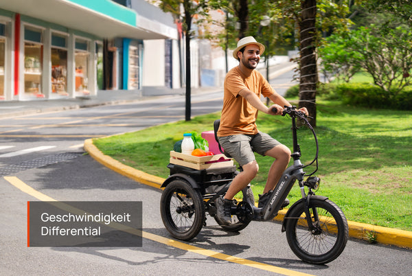 Das Differenzialsystem des Trikes passt sich bei Kurvenfahrten automatisch an, um ein Überschlagen zu verhindern und eine stabile Kontrolle zu gewährleisten.